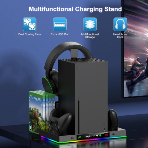 Support de ventilateur de refroidissement et station de chargement pour Xbox Series X, avec éclairage RGB 15 couleurs et ventilateur à 3 vitesses